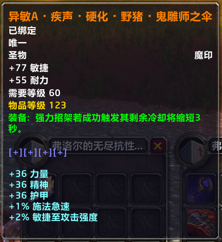 给各种野生橙装(潮汐咒符+2、命运卡牌、至尊九诫啥的)添加了词缀支持,更新后拿到的都会生成词缀和符石孔。